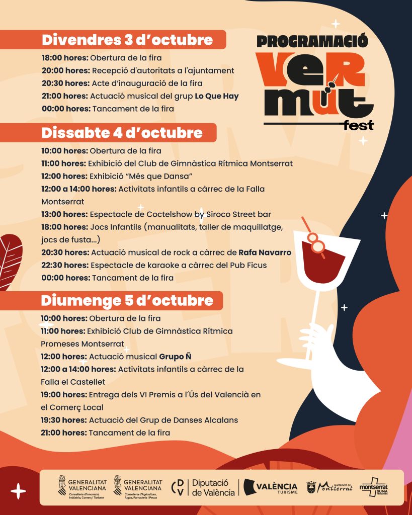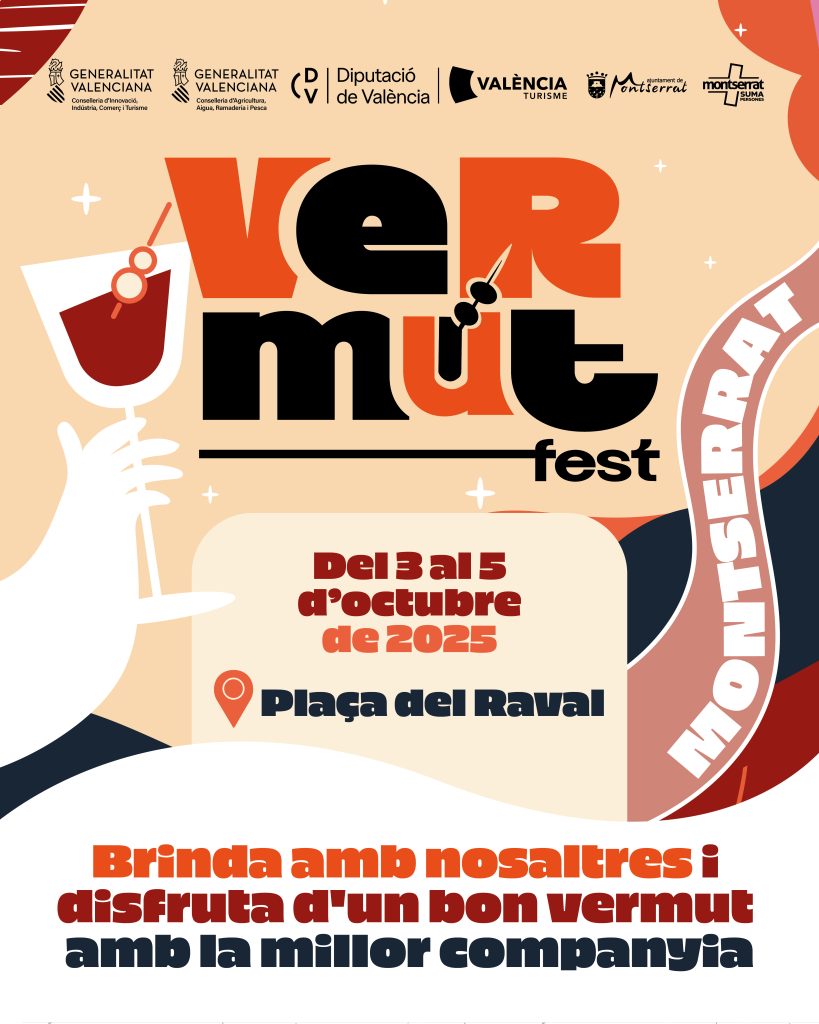 L’Ajuntament de Montserrat convida a tota la ciutadania i visitants a disfrutar de la nova edició del Vermut Fest, que tindrà lloc els dies 3, 4 i 5 d’octubre de 2025.