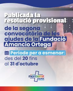 Ja està disponible la resolució provisional de la segona convocatòria de les ajudes de la Fundació Amancio Ortega.