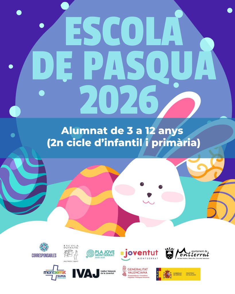 S’obri el termini d’inscripció a l’Escola de Pasqua 2026 per a xiquets i xiquetes de 3 a 12 anys!